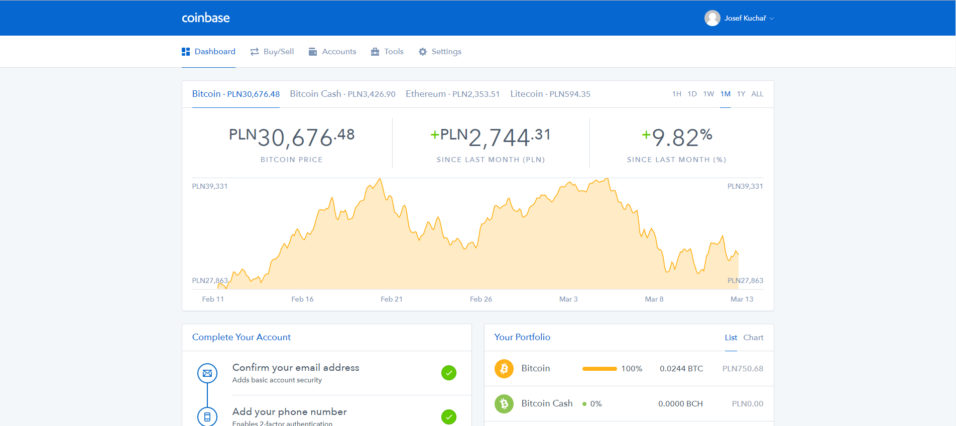 Tak samo jak wszystkie inne giełdy, również CoinBase wymaga od swoich użytkowników sprawdzenia tożsamości. Sprawdzenie przebiega na stronie giełdy, powinieneś zapisać dowód osobisty lub prawo jazdy, ewentualnie paszport. Jeżeli tego nie zrobisz, to nie możesz kupować i sprzedawać walut. Bez sprawdzenia możesz tylko przyjmować lub wysyłać kryptowaluty.
