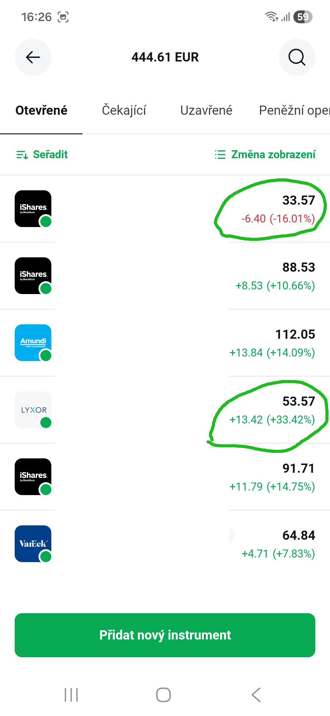 Čtenářka si portfolio založila přesně podle článku a 30. července 2025 do něj vložila 395 euro.